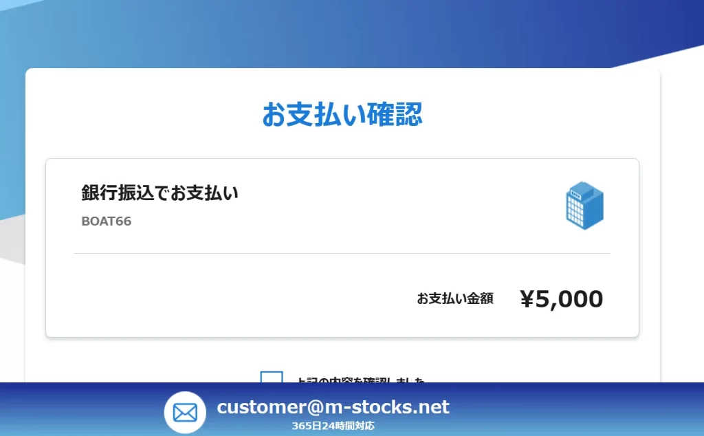 BOAT66(ボート66)の決済方法:銀行振込