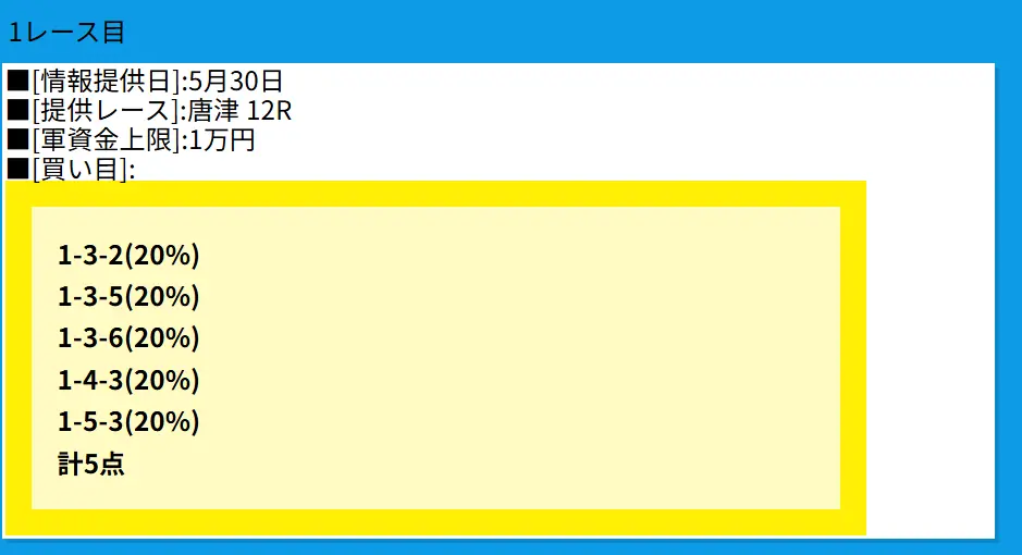 | 買い目 | 軍資金 |