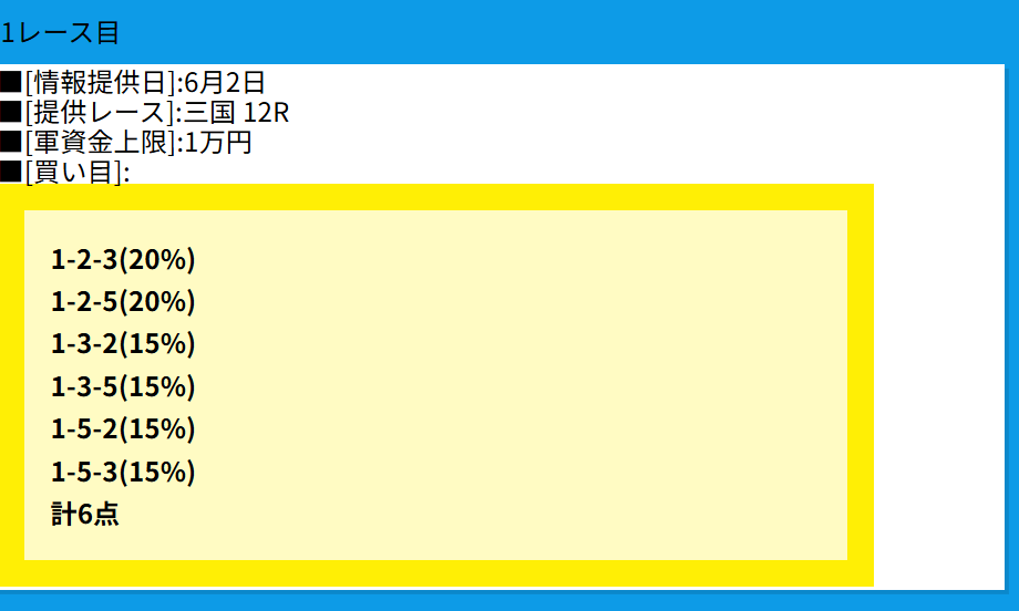 | 6月2日(月) | 的中 | +8,600円 |