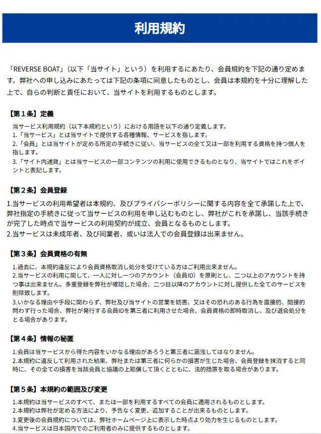 リバースボート(REVERSE BOAT)の非会員ページは手抜き?