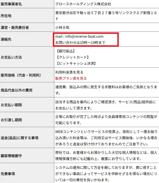 リバースボート(REVERSE BOAT)の所在地は怪しい?