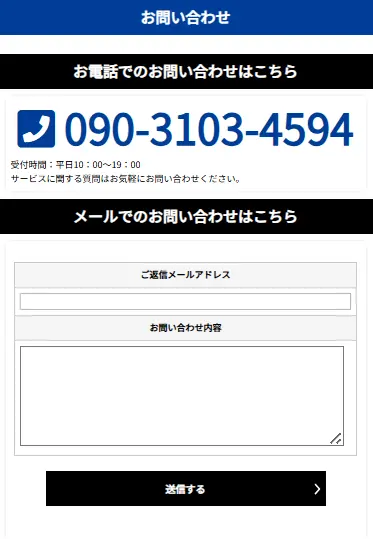サイトの右下の「お問い合わせ」の文字をタップすると